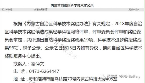 其中,全钒液流电池储能系统模块化集成及应用获得2018年度自治区科学技术进步奖二等奖。